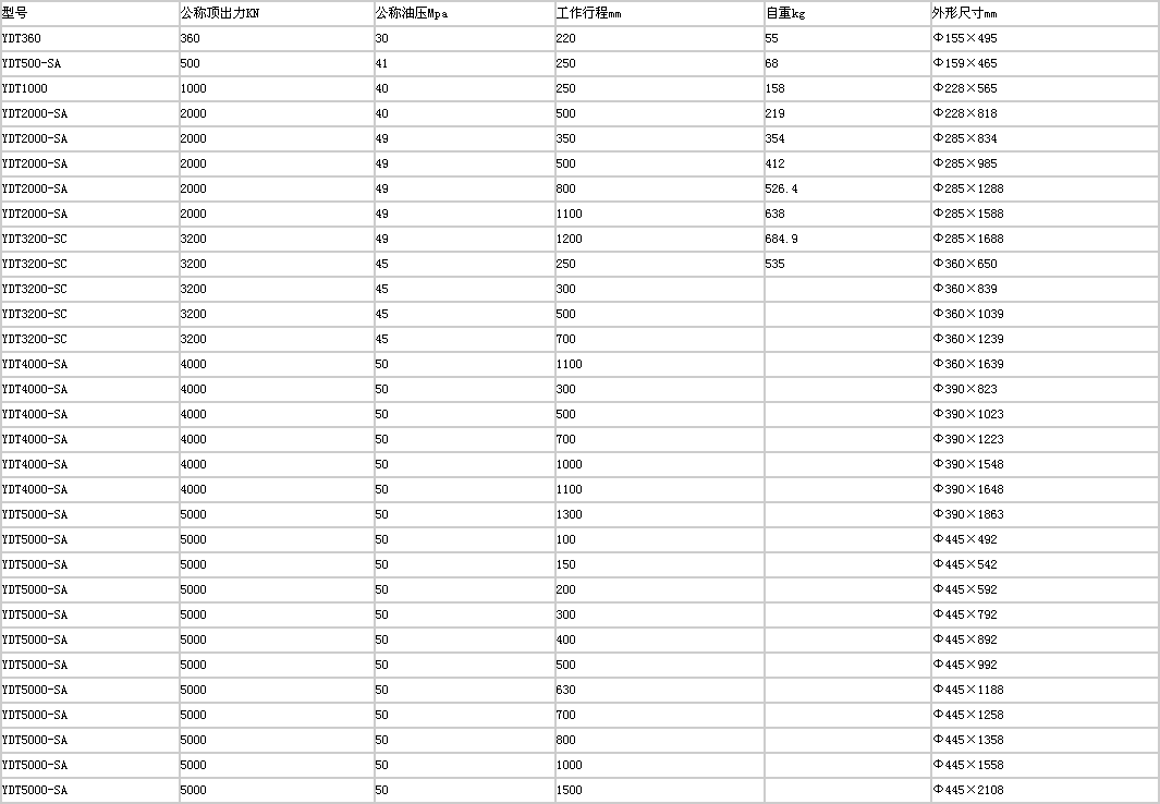 | YDT系列頂管機(jī)油缸 詳細(xì)參數(shù) |